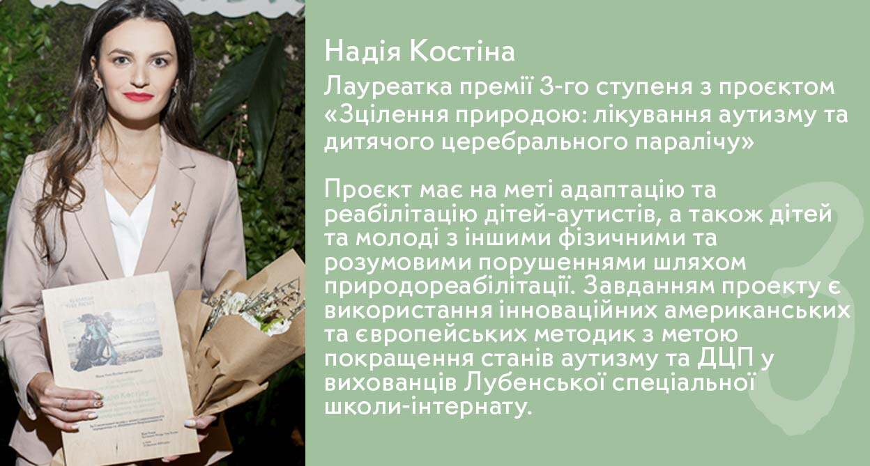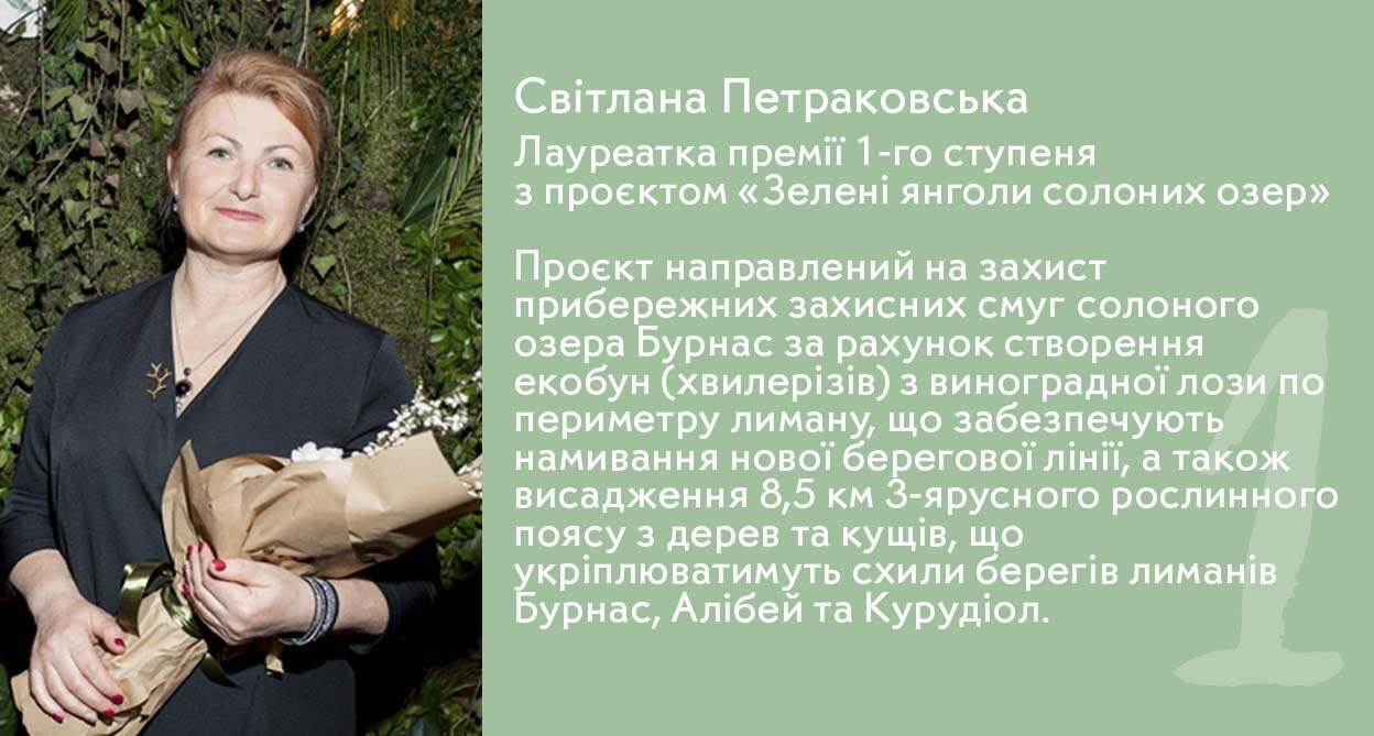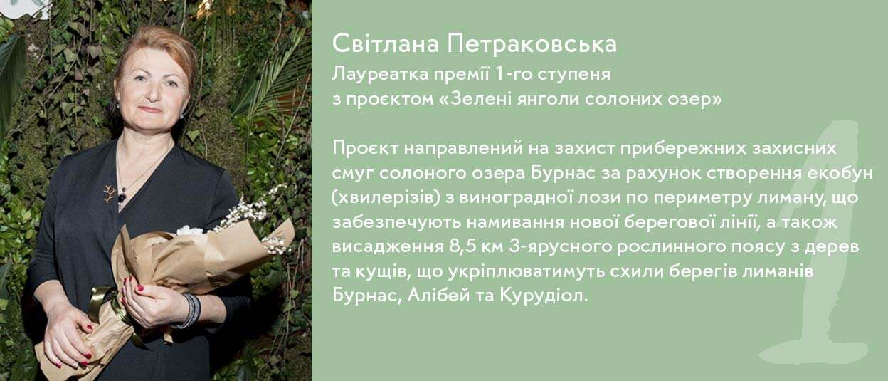 - Євгенія Аратовська, кураторка проєкту «Україна без сміття», лауреатка премії "Земля Жінок" 2016 року;